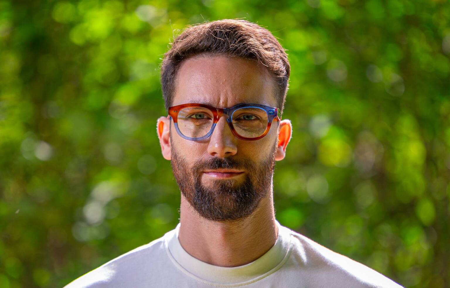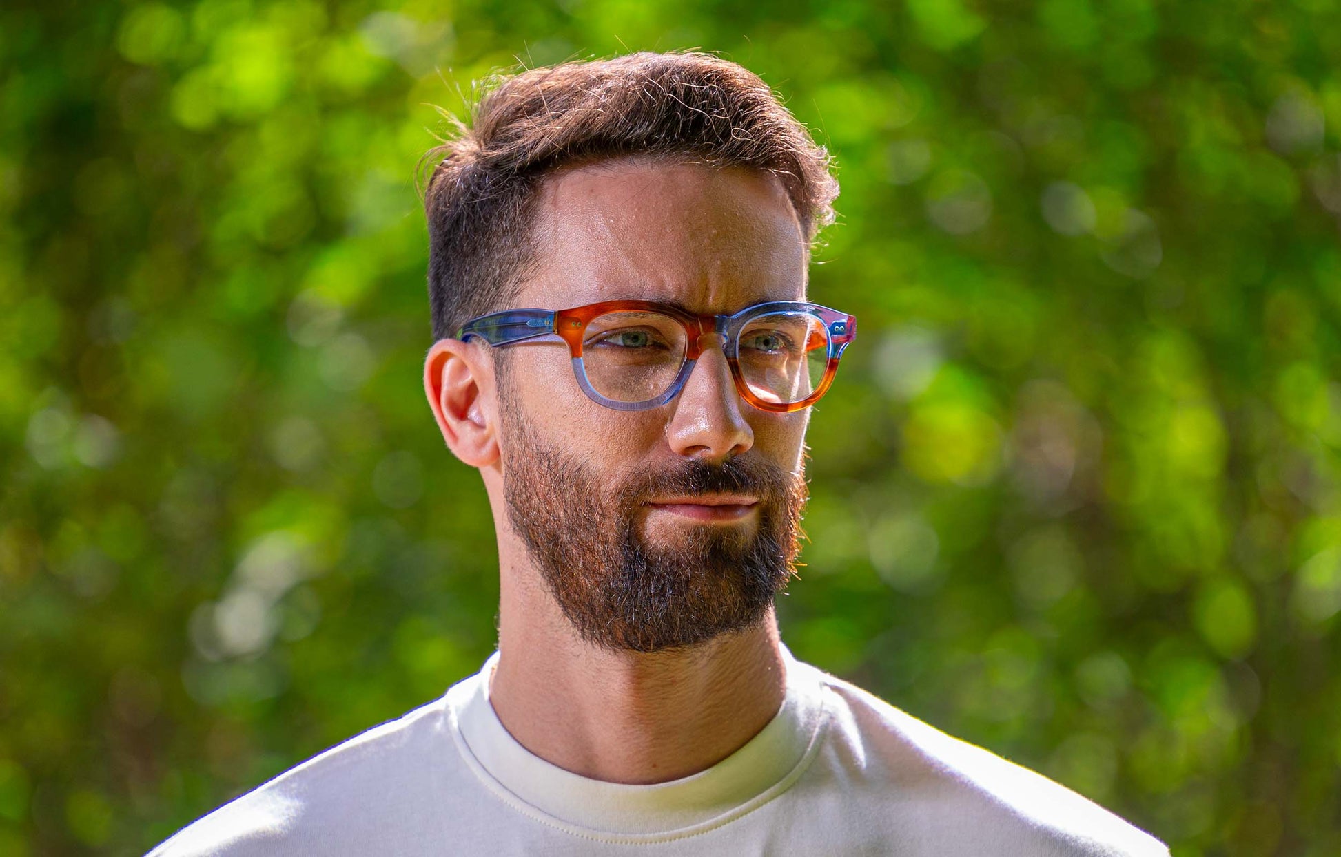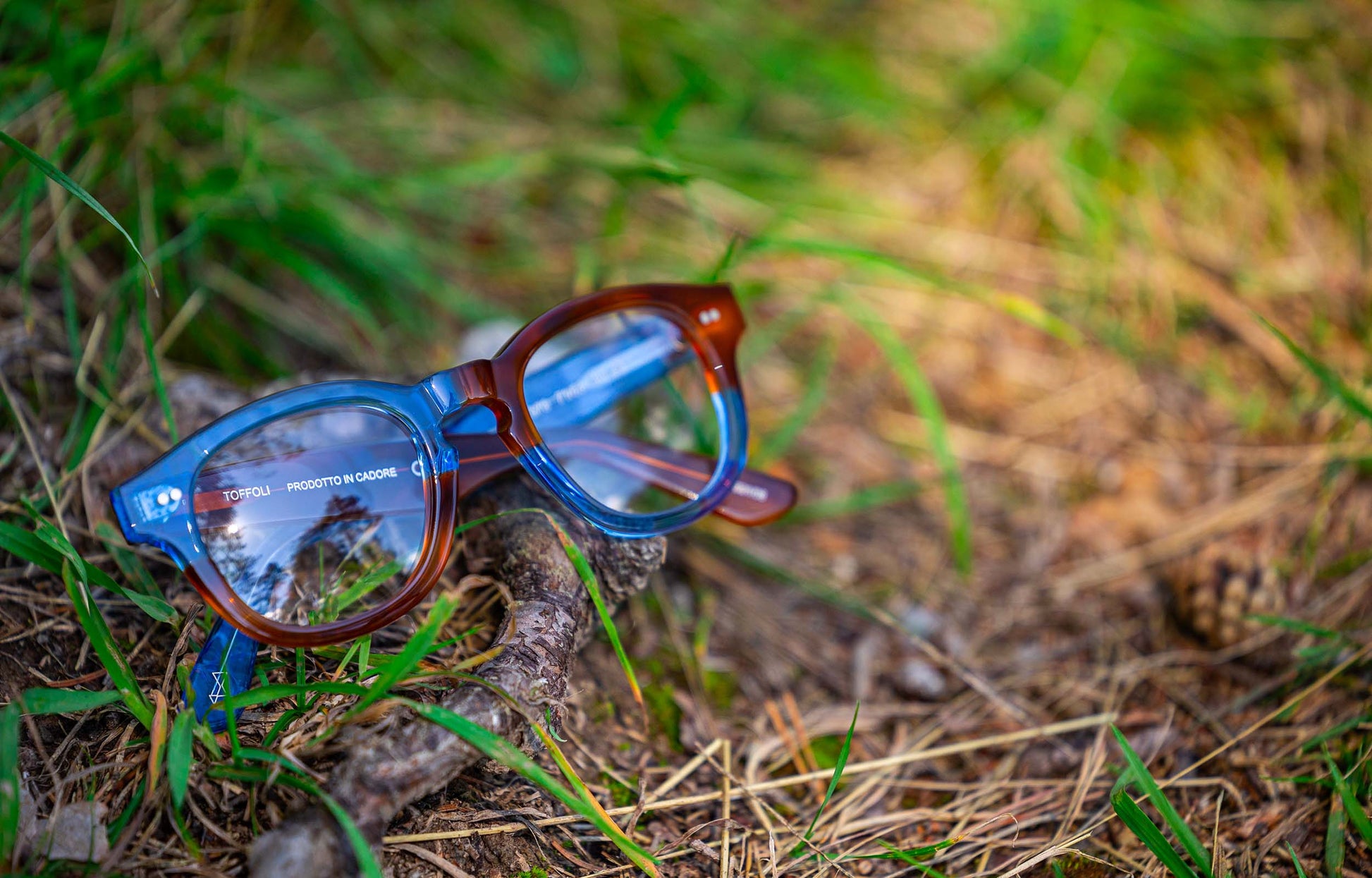 Un occhiale bicolore maschile audace e di carattere che rispecchia la tua personalità. Montature artigianali fatte a mano in Italia, a Cadore.