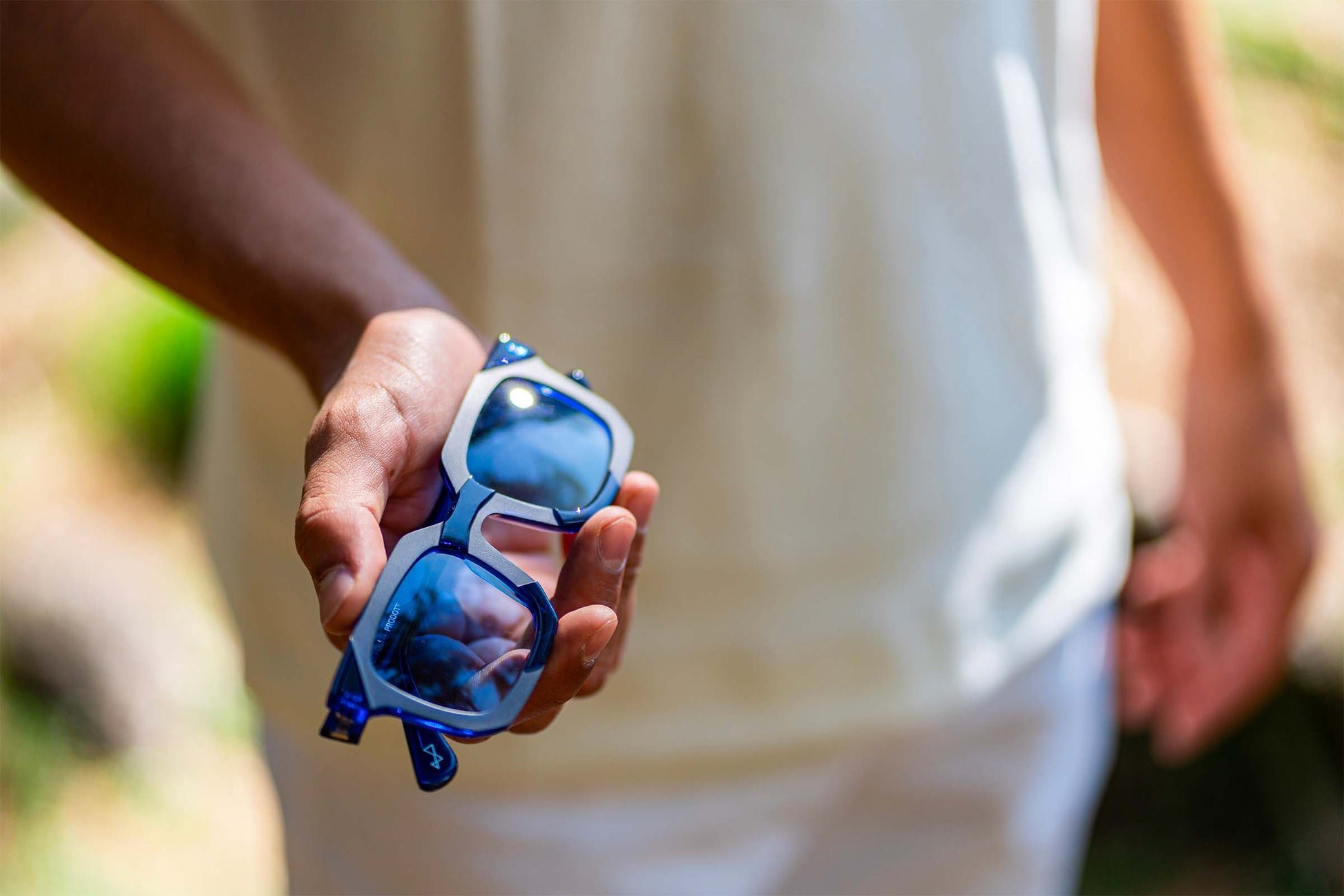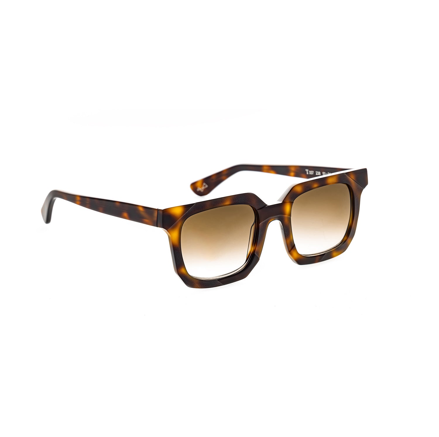 Un occhiale unisex, da vista o da sole, con lenti ampie e linee squadrate che gioca con lucido e opaco.