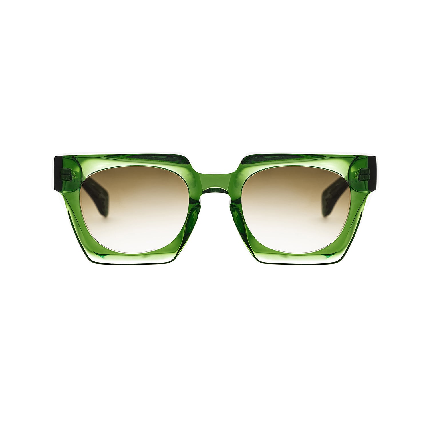 Un occhiale, da vista o da sole, con lenti ampie, che gioca con le forme tonde e quadrate, concave e convesse.