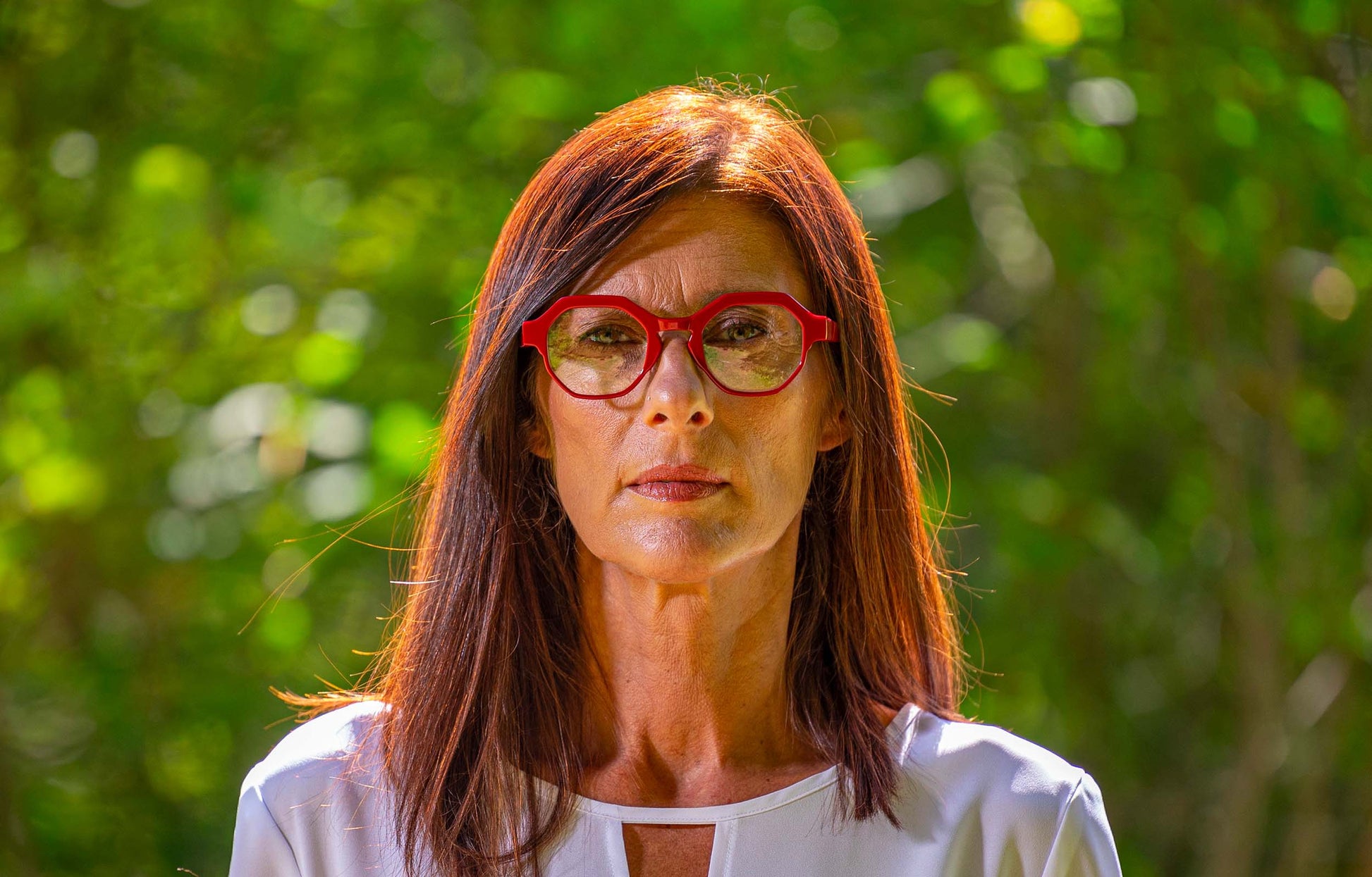Un occhiale femminile dalle forme tondeggianti ma tratti decisi. Per chi non vuole rinunciare alla delicatezza del cerchio e alla forza delle linee.
