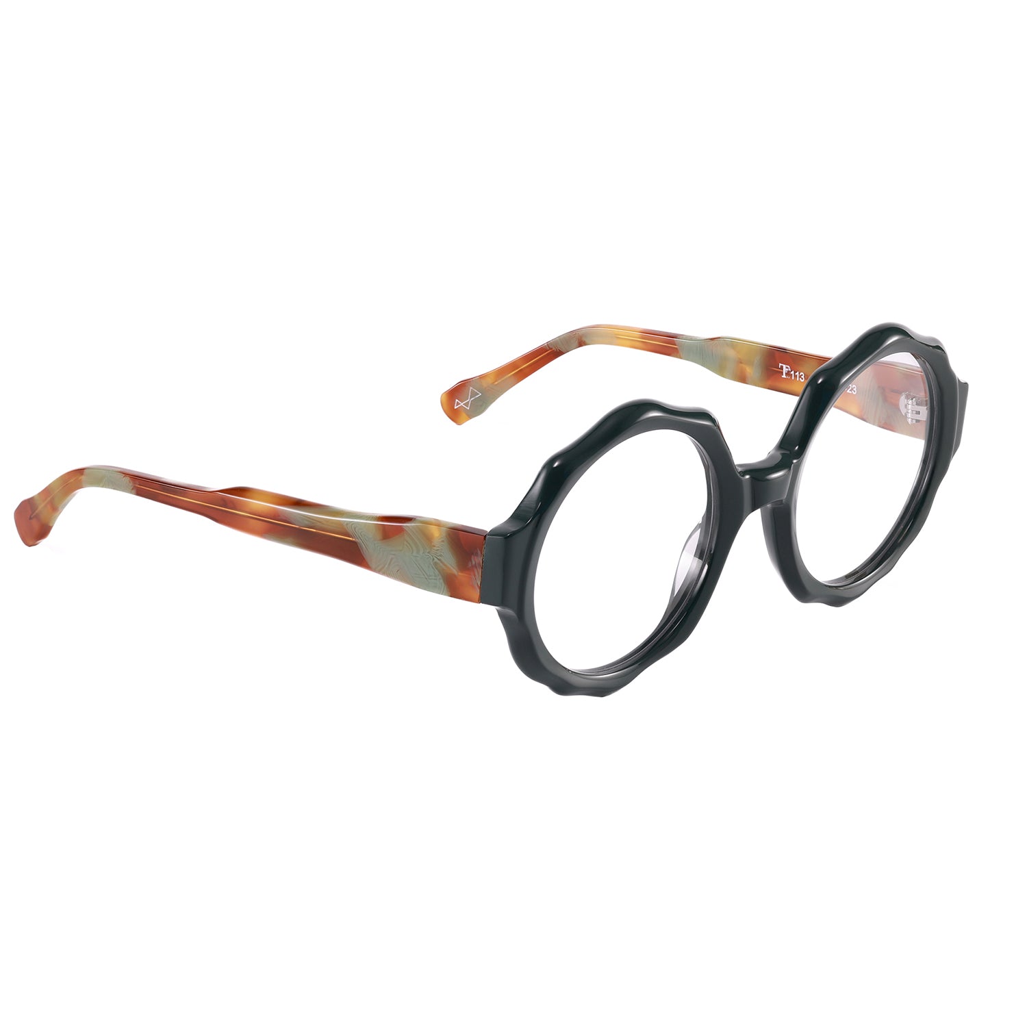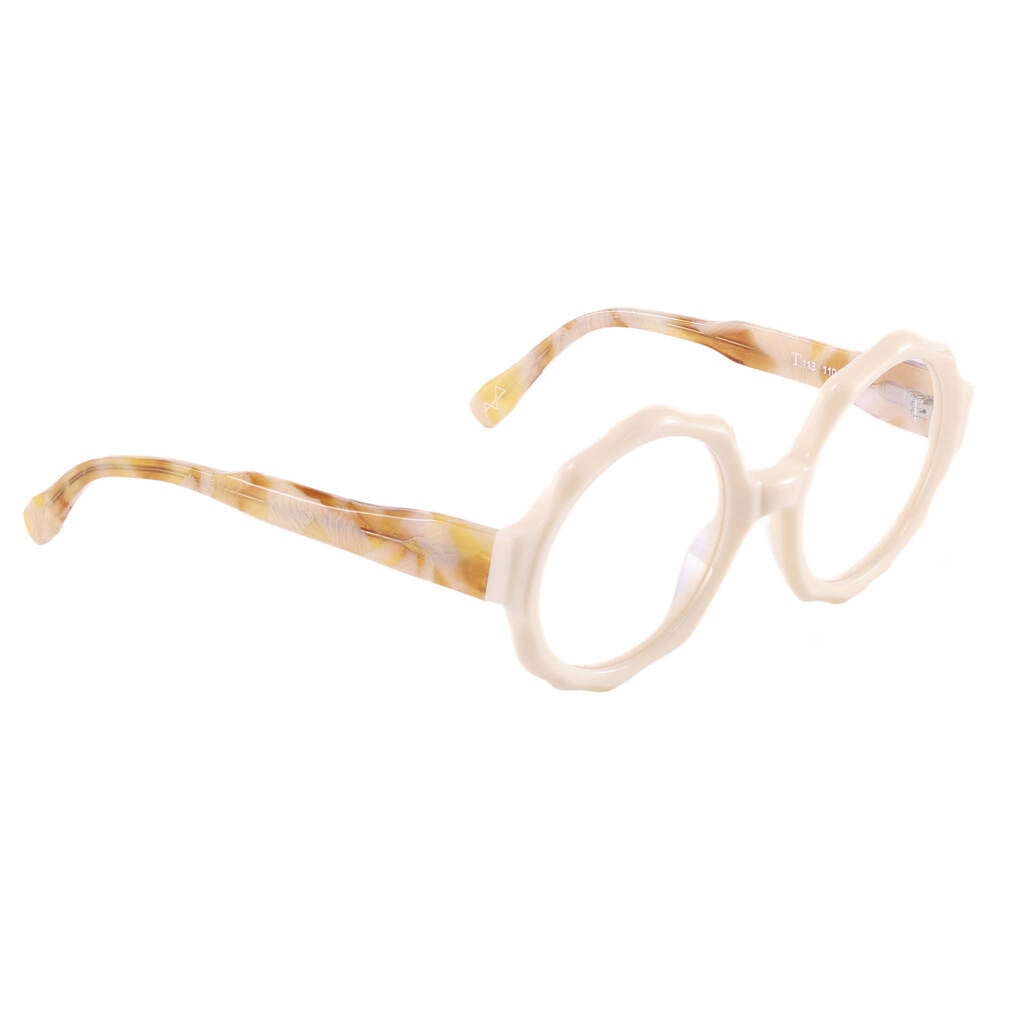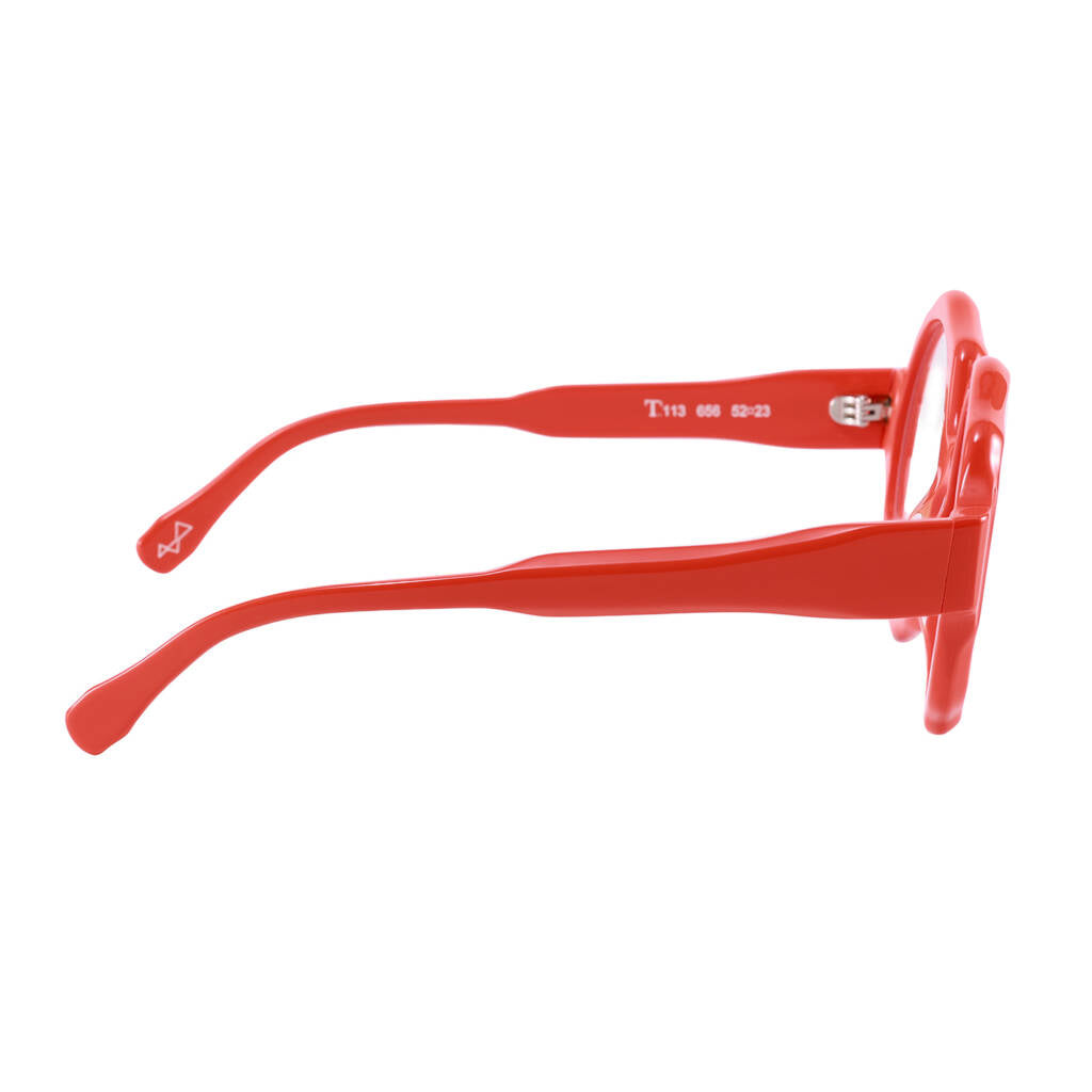 Il nostro T113 ha un design ricercato ed estroso, per dare un tocco di stile ai tuoi outfit e differenziarti. Tutti i nostri occhiali sono Made in Italy, realizzati artigianalmente in Cadore.