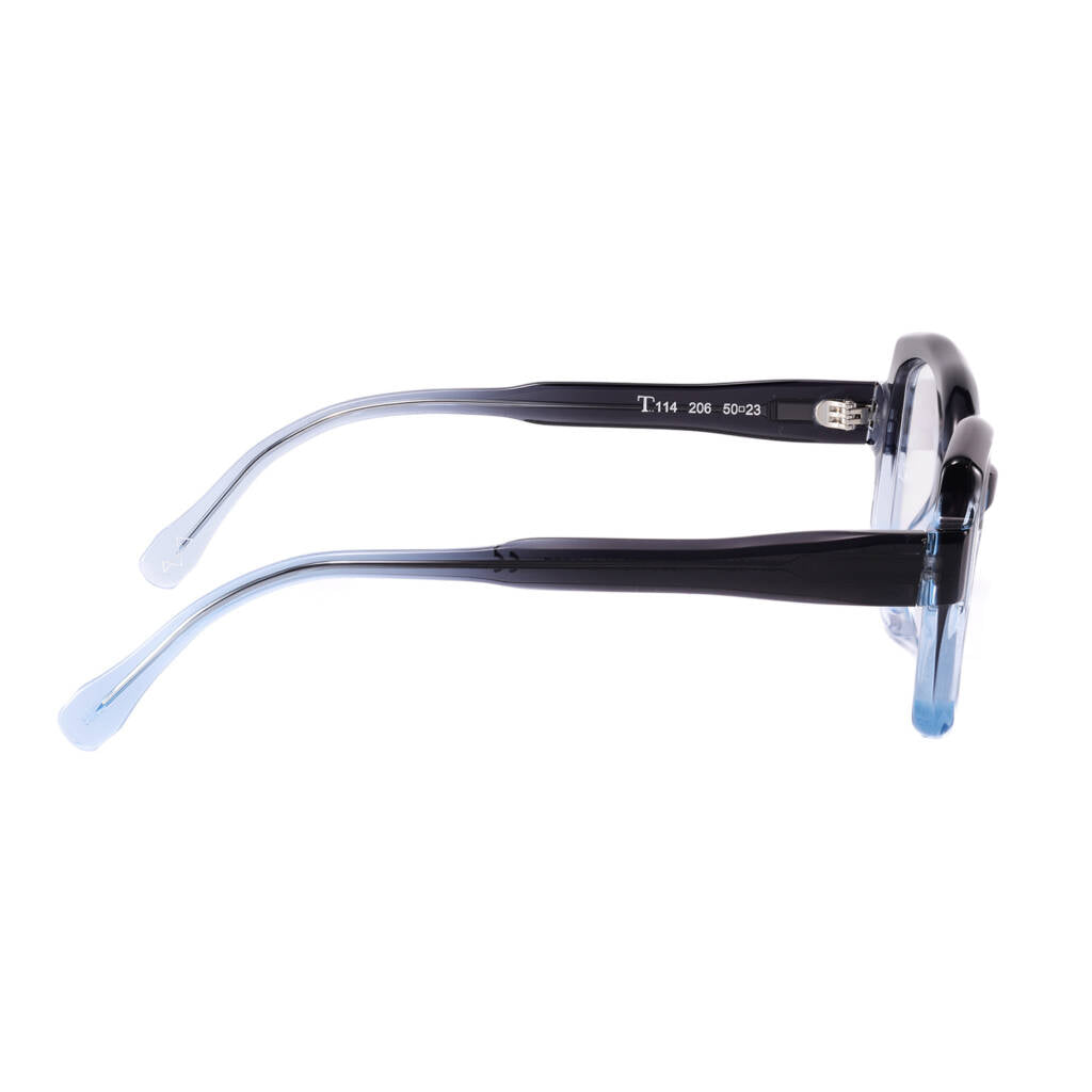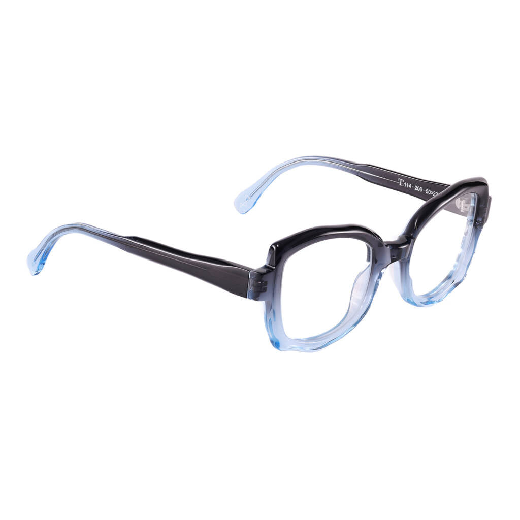 Il nostro T114 ha un design moderno e forme arrotondate, leggerissimo e confortevole, ideale sia come occhiale da vista che da sole. Tutti i nostri occhiali sono Made in Italy, realizzati artigianalmente in Cadore.
